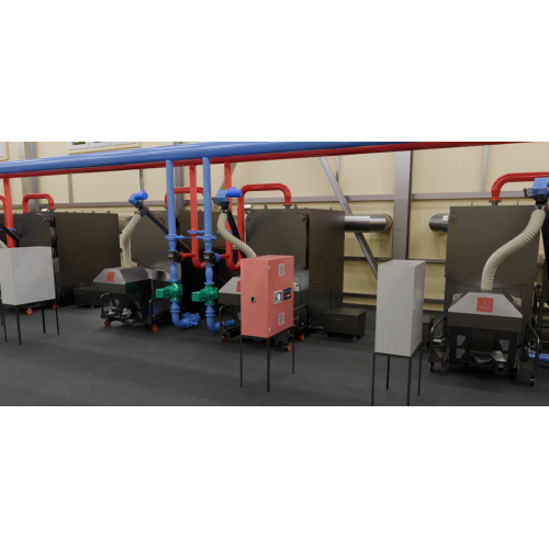 - В котельных использованы котлы промышленной серии Пиролиз Мастер PELLET PRO с факельными горелками последнего поколения, для достижений максимальных параметров эксплуатационных качеств.